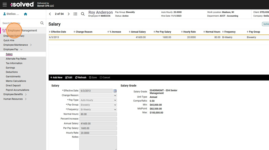 - Navigate to https://berndtcpa.myisolved.com/default.aspxClick "Employee Management".